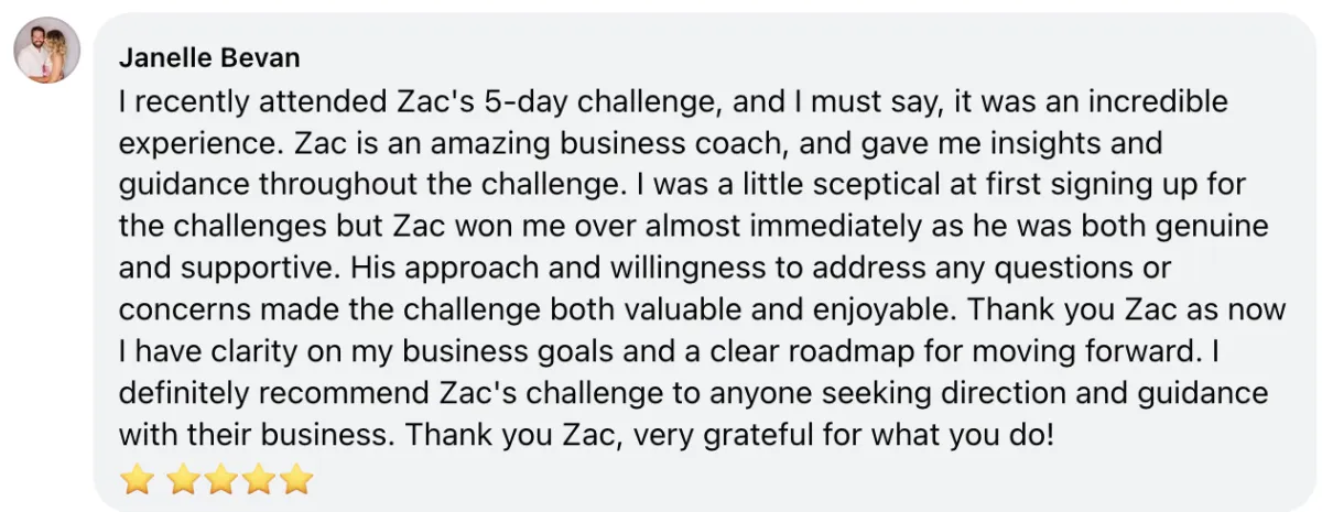 "Taking the main vision from the business owner and making it a reality. Zac has an amazing skill set to really amplify your business and to get your purpose, vision and clarity out so that you can actually run your business " - Alistair Hutton | CEO
